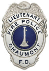 Line 1: LIEUTENANT Line 2: FIRE POLICE Line 3: CHAUMONT Line 4: F.D.
