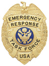 This badge is custom engraved; the text shown is for example only. The center disk, finish, attachment and curve of the badge must also be selected. Line 1: EMERGENCY Line 2: RESPONSE Line 3: TASK FORCE Line 4: USA Please note: Custom engraved badges take approximately 4-6 weeks for delivery. Dimensions (w x h): 1.88'' X 2.57''