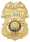 Line 1: MEMBER Line 2: 25 YEARS Line 3: VOL. FIRE DEPT. Line 4: YUMA