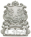 This badge is custom engraved; the text shown is for example only. The center disk, finish, attachment and curve of the badge must also be selected.