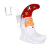 The Santa Moon Dab Rig is made from borosilicate glass with hand-painted accents. Shaped like a crescent moon, Santa Claus' familiar face can be seen bearded in clouds and topped with a starry nightcap. A fixed perforated downstem provides a bit of bubbly water filtration as you inhale. Each dab rig includes a 14mm male quartz banger.