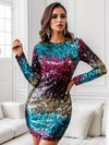 Sequin Round Neck Long Sleeve Mini Dress