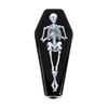 The end of one leads to the beginning of another; celebrate the circle of life with the Skelly's Coffin Hand Pipe. Made from black borosilicate glass, this hand pipe is shaped like a comfy coffin, decorated with a white skeleton laying inside. The top side is decorated with a slender spider hanging from its freshly-spun web. Hand pipes are simple to use and nice to pass around with friends at any smoke sesh, which is why they're a popular choice in the smoking community. Each pipe has a built-in carb hole on the side.