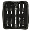 Never again have to pick and choose between which tools to take on the go only to discover you have not brought the one you need! This comprehensive travel kit features one double-ended threaded handle and eight interchangeable heads. All made from medical grade stainless steel, these tools can do it all, from scraping to scooping and everything in between.