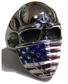SKULL HEAD AMERICAN FLAG BANDANA STAINLESS STEEL BIKER RING