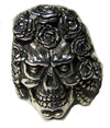 SKULL HEAD WITH ROSE HAIR BIKER RING