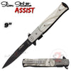 Similar to the classic Italian Stiletto knives, this White Marble 9' Spring Assisted folder gives you the Godfather style from Italy. The look of an auto, without their restrictions to carry in your pocket. The 2-Tone handle features acrylic White marble/pearl top and bottom scales. The trigger assist or thumb stud quickly deploys the Black finished blade, then uses a standard liner lock to close and secure.