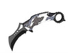 Snow CAMO High Quality Assisted Opening Karambit Folder. Featuring 440 Stainless Steel blade black finish! Closed Length: 4-3/4" , Blade Length 2-3/4" , Open Length: 6-1/2" Anodized Aluminum Snow Camo Handle, Includes Metal clip on back.