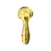 Add a bit of whimsy to your next sesh with the Sparkle Lane Dichro Fumed Spoon Pipe! Made from borosilicate glass, this hand pipe has a golden fumed finish that changes color over time with use. An airy dichro-flecked stripe adorns the middle while amber hues flow around the body. A carb hole is built into the left side of the bowl.