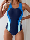 Sporty Slim One Piece Swimsuit Color Matching Beachwear