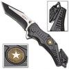 Handle Features: Glass Breaker, Belt Cutter, Army Logo, Flipper