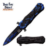 Spring Assist Open Fantasy Knife Blue Dragon Design With Clip