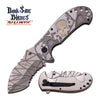 Spring Assisted Folding Knife Gray Stone Glow-in-Dark Skull Serrated Blade - Tophatter's Guns'N'Weapons Store