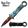 Dragon design spring assisted knife. This fantasy pocket knife is a cool knife design. The handle has excellent dragon design embossed printed on the aluminum handle. Overall length of the knife is 8.25 inch and 3cr13 steel blade is 3.25 inch long.
