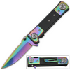 Spring Assisted Pocket Knife Rainbow With Black G10 Handle