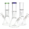 From cash to pancakes, good things often come in stacks. The Stacked Dome Perc Beaker Bong is no exception! This clear glass piece has a beaker style body with a rippled dome percolator inside. This perc provides water filtration to your smoke in combination with the diffused downstem, so you can make big rips off of this smokestack! Cool things down with the bullet hole ice catcher. A colored glass accent is found on the mouthpiece for a finishing touch to this bong. Includes 14mm male herb slide and diffused downstem. Mouthpiece color varies.