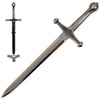 Replicated movie sword. The blade material is 440 Stainless Steel and the handle is solid metal alloy. 8 1/2 Inches overall on length includes metal alloy stand. Comes in a blister packaging.