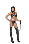 Leather string bra with criss cross front and back detail. Matching double strap panty with lycra back included.