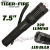 Tiger-Fire Stun Gun 180 Million Volt Rechargeable ABS and Aircraft Aluminum Stun Gun w/ LED Flashlight. This powerful guy sports an aircraft aluminum and ABS Plastic body and a jagged jabbing surface on the rim of the reflector as well as ribbed surface for swinging. The super bright 220 Lumens LED light will BLIND your attackers, and if that doesn't do the trick the 180 million volt charge will.