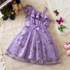 This is a description of a charming and versatile dress for young girls, ideal for various occasions. The dress features a knee-length design with a solid pattern, making it suitable for transitioning between summer and autumn. Its elegant design includes sequined accents and a tulle skirt, giving it a princess-like appeal, perfect for special events. Tailored for children aged 1 to 6 years, it offers an age-appropriate and flattering fit.