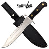 Survival Knife with 16.5 length bowie knife blade. Fixed blade knives are cool knives. This full tang knife has a 11 inch 3cr13 stainless steel blade with reverse serration on blade. Includes nylon sheath.
