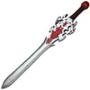 The Svartálfar Sword of Dark Spirit Foam Elven Sword  is constructed from high quality Polyurethane foam with a PVC inner core. This sword is battle worn from living in the underworld and fighting the Ljosalfar to take over their kingdom and walk amongst the light again.  The Dark Spirit sword features the blood of the first Light elf this Svartálfar killed using the Light Elfs life essence to power the runes carved in the blade giving it the driving force to with stand light elemental magic and protect the wielder.  This sword is hand painted black and silver with simulated finger blood painting of this swords first victim.