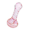 Enjoy a toke day or night with the Swirling Glow Spoon Pipe! Made from translucent borosilicate glass, this hand pipe has a pink fumed finish that changes color over time with use. The spiral design glows in the dark, and even works under UV light too! Its classic spoon style body is ideal for any quick smoke sesh. A carb hole is built into the left side.