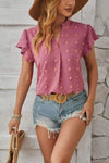 Swiss Dot Notched Cap Sleeve T-Shirt