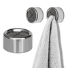 Holding your towel in place is simple; all you have to do is press it into the clamp. After removing the self-stick covering, adhere the hook to the sleek surface.