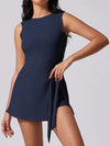 This tennis dress for women is designed with built-in shorts, offering both style and practicality for active lifestyles. Featuring a sleeveless boat neck design and a sporty U-shaped back, it combines a youthful look with comfort and functionality. The flowing pleated hem and classic contrast binding add to its charm, while the slim fit ensures it sculpts to your body for unrestricted movement.