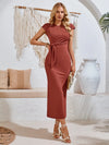 Textured Slit Round Neck Dress