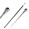 Our Kingpin Silver Handle Walking Cane Sword has a silver finish aluminum handle with impeccable detailing. The shaft is constructed of steel. Hidden inside is a 12 inch stainless steel spear point blade for your protection. The bottom of this cane features a rubber stopper to help balance and prevent slipping.