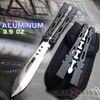The ONE 'alien' balisong ORIGINAL DESIGN aluminum Butterfly Knife w/ BLACK 'inked' Hardware, bushings, sharp 440C or Trainer, with Blue, Silver, or Black channel construction, and Zen Pin system. Finally an affordable, flippable Balisong the community can be proud of, now IN STOCK. Featured as one of S2G's highest quality butterfly knives.