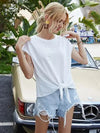 Tied Eyelet Round Neck Cap Sleeve T-Shirt