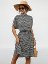 Tied Printed Mock Neck Short Sleeve Dress