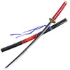 This is an awesome katana design from Touken Ranbu. The blade is made of high-quality carbon steel, with an awesome quenched look on the flat. It features the awesome Souza Samonji emblem design in red and yellow on the wood saya (scabbard). This item is great for a realistic looking cosplay outfit, and it looks amazing on display as well.