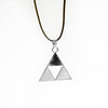 Necklace replica of the iconic Triforce symbol. Zinc alloy. Includes necklace string and comes in a magnetized Fire and Steel silver foil jewelry box.
