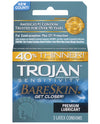 Trojan BareSkin. Our thinnest latex condom ever. 40% Thinner than our Standard Condoms. Silky Smooth Lubricant - for comfort and sensitivity. Premium low-odor latex - to help ensure reliability and reduce the risk. Each Condom is Electronically Tested and Meets U.S. Standards for Strength - To help ensure reliability.