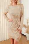 Twisted Long Sleeve Ruched Mini Sequin Dress
