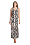 Abstract Print Sleeveless Maxi Dress with Front Slits