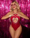 Velvet Rhinestone Heart Cut Out Bodysuit