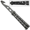 Featuring very thick and heavy construction, this butterfly belt cutter is an ideal tool for butterfly training and will help you learn to flip like a pro. Providing a user with seamless balance when flipping, the tool has a 3.625 inch stainless steel blade in a powder-coated black finish and comes complete with a locking catch to secure the butterfly in place where you need it. The curved hook end serves as the belt cutter and living up to its name as a multi tool, the blade features a flat head screwdriver on the tip along with cutouts to also function as a hex wrench. With this kind of enhanced functionality, this is the perfect practicing tool to improve your butterfly skills!