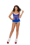 This playful sailor costume includes a mesh halter neck teddy and a coordinating headpiece for a fun, flirty vibe.