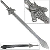 Rebellion is the name of Dante's epic sword, given to him by his father as a keepsake in the video game and anime series. This replica appears in the dormant form, and in the game it becomes awakened as Wailing Skull when exposed to Dante's blood. This replica is every bit dark Gothic as Dante himself, and exists as a huge Claymore. The blade is polished stainless steel and about 46 inches long with a wide blade profile, especially at the tip where it is 3.75 inches in width. Comes with a free sheath.