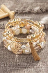 White Bohemian Rhinestone Beaded Fringed Layered Bracelet