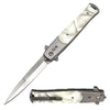 White Pearl Handle Cavalier Push Button Italian Style Switch Blade Knife - TOPHATTER'S ARMORY DEALS