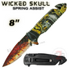 Wicked Skull Spring Assisted Rescue Knife w/ Drop Point Serrated