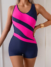 This sporty slim one-piece swimwear for women features a printed striped design, perfect for beach outings or pool days. Its flattering fit and sexy yet practical style make it a great choice for swimming or sunbathing.