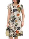 The short sleeve design and round neckline make this dress perfect for both casual and semi-formal occasions. The floral printed pattern adds a touch of femininity and elegance, while the knee-length cut provides a flattering silhouette. The thin material and button closure on the back ensure a comfortable and secure fit.