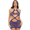 Up top, this sizzling net mini features a halter neck and big cutouts; the tiny skirt hugs all your curves down below. Pair it with some other favorite lingerie pieces, or rock it solo.